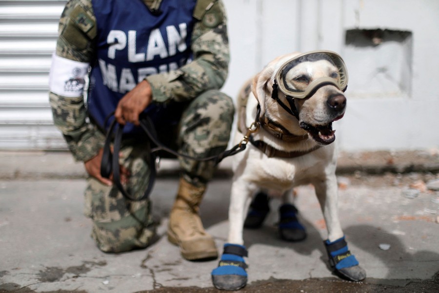 Read moreA member of the Mexican navy kneels next to Frida the rescue dog after an earthquake struck the southern coast of Mexico, in Juchitan, Mexico, on September 10, 2017. Mexico suffered a pair of major earthquakes in September—an 8.2 magnitude on the 7th in the state of Chiapas, and a 7.1 on the 19th near Mexico City. The combined quakes cause widespread damage and claimed more than 450 lives. The work of the rescue dogs and massive displays of volunteerism became the visual symbols of the response to the disasters. #