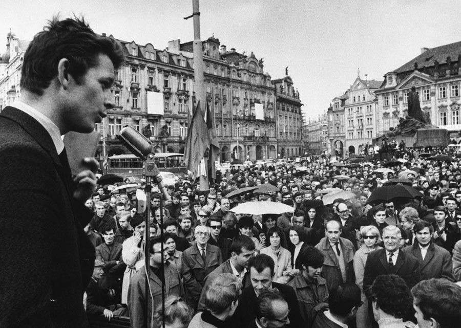 Read moreA speaker addresses a mass rally in support of democracy organized by the youth of Prague at the Old Town Square in Prague, Czechoslovakia, on May 18, 1968. During a period called the "Prague Spring," Alexander Dubček, the newly-elected leader of the Warsaw Pact nation, enacted numerous reforms loosening state control and expanding individual rights, which both encouraged citizens and angered the Soviet Union. #