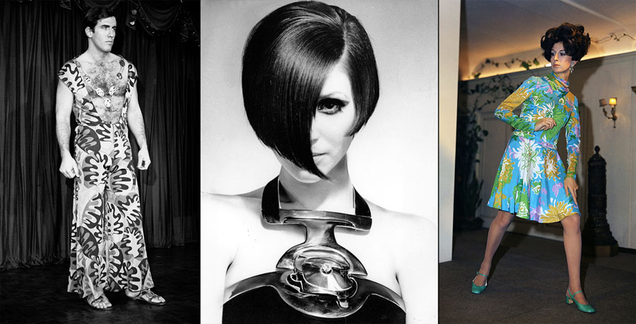 Read moreFashion in 1968. Left: A male model wears a silk jersey print pajama leisure suit, sandals, and a necklace at a fashion show in New York on January 9. The show was entitled "Clothing for the Emancipated Man." Center: A sculpted silver necklace designed by Pierre Cardin features a diamond worth $60,000. The necklace is built into the halter that is part of a long black crepe evening gown presented in his spring collection in Paris, France, in February. Right: A cocktail dress of printed pure silk with a full skirt, a creation by the Fontana Sisters fashion house of Rome, to be presented at the upcoming Italian spring-summer ready-to-wear fashion show that opened in Florence on November 6, 1968. #