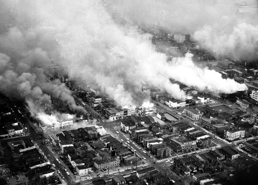 Read moreThis aerial view shows clouds of smoke rising from burning buildings in northeast Washington, D.C., on April 5, 1968. The fires resulted from rioting and demonstrations after the assassination of Dr. Martin Luther King Jr. #