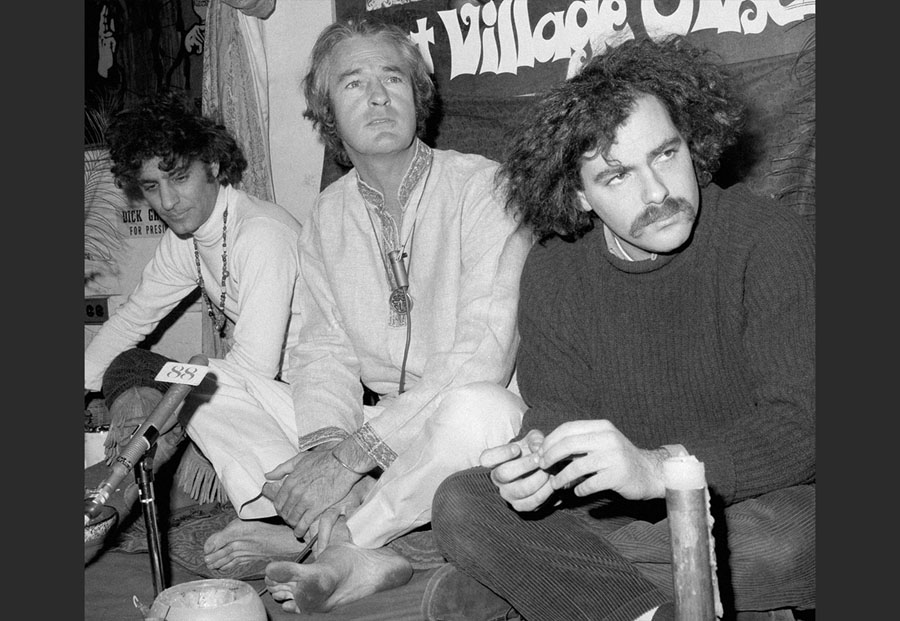 Read moreOriginal caption: Dr. Timothy Leary holds a conference in New York City on February 21, 1968. The LSD advocate said he is tuning in with peaceniks and “Yippies” and hopes to have a million young people in Chicago during the Democratic Party’s convention in August. He said he hopes they will disrupt the convention through “Flower Guerrilla” warfare. At left is Abbie Hoffman, who said he is an organizer and at right is Jerry Rubin, peace movement worker. #