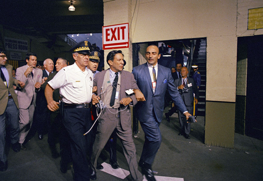 Read moreMike Wallace, a CBS newsman, is hustled off the Democratic National Convention floor in the aftermath of a row between delegates and security officers during the nominating session on August 28, 1968 in Chicago. He was taken up a ramp to a second-floor room. #