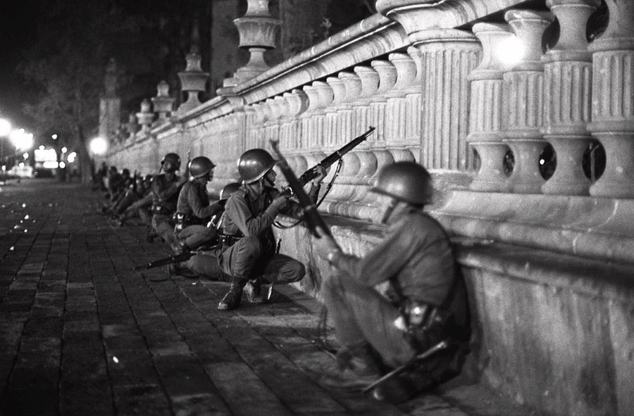Read moreMexican army soldiers crouch with weapons ready in Mexico City's Tlatelolco district, in this October 2, 1968 photo. The truth behind the stunning assault on a peaceful democracy protest known as the Tlatelolco Massacre, in which some 300 people are believed to have been killed, remains largely hidden by government and military secrecy. #