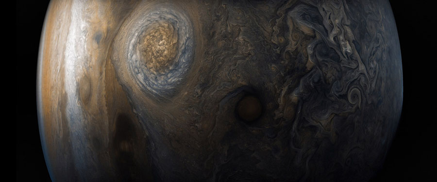 Launched in 2011, NASA’s Juno mission to Jupiter arrived in mid-2016, and the spacecraft maneuvered into a 53-day orbit around the gas giant. The JunoCam imaging instrument, one of nine scientific instruments on board, has been returning red, green, and blue filtered images of Jupiter to Earth, and NASA is encouraging anyone to download, process, and share them. Citizen scientists like Seán Doran and Gerald Eichstädt have been finessing these images,—enhancing the existing contrasts and boosting the colors to create really amazing views of our solar system’s largest planet. Cloudtops pop into view, swirls and structure and depth become more apparent, and the enormous roiling atmosphere seems almost within grasp. Many thanks to Seán Doran for sharing these images here, and to the teams involved in bringing them to Earth at NASA, the Southwest Research Institute (SwRI), and Malin Space Science Systems (MSSS). See also “The Photoshoppers Behind Dreamy Jupiter Photos” from November 2017.