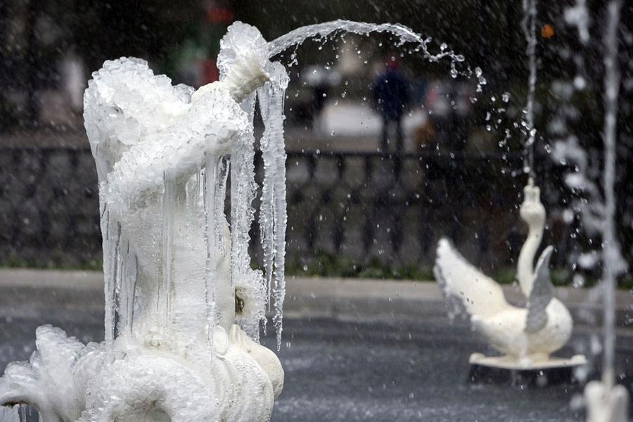 Read moreIn Savannah, Georgia, a frozen fountain in Historic Forsyth Park still works despite freezing temperatures and rain, photographed on January 3, 2018. Only a few motorists ventured out in the freezing rain that coated bridges and ramps with ice, forcing police to close roads and highways in Savannah. #