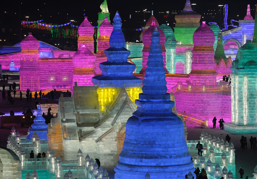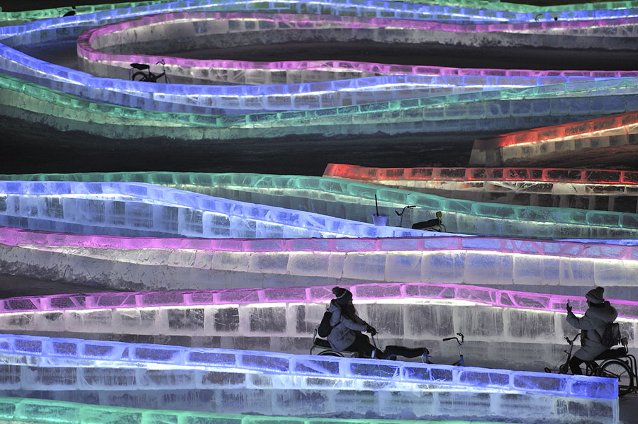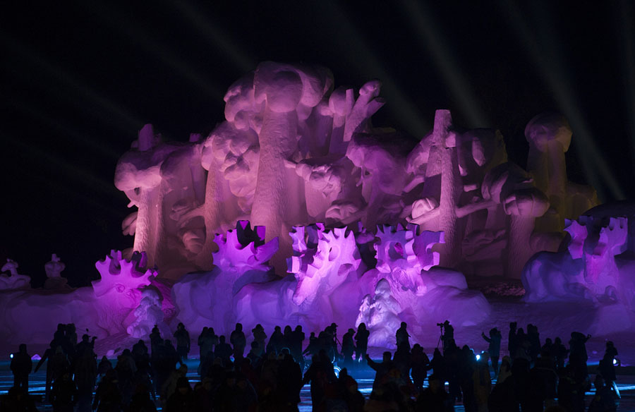 Read moreTourists visit illuminated ice sculptures at Ice and Snow World Park in Harbin, China, on December 18, 2017. The Ice and Snow World Park will host the 34th Harbin International Ice and Snow Sculpture Festival from January 5 until the end of February. #