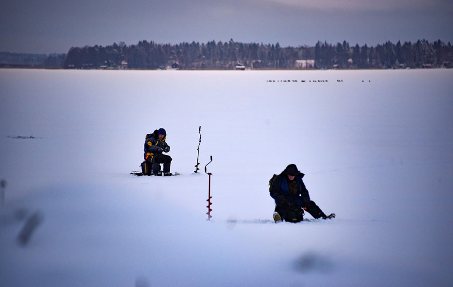 Read moreMen ice-fish at midday on the frozen Bothnia Sea on December 27, 2017, in Vaasa, western Finland. The ice is only 10 centimeters thick and at the safety limit of carrying a loaded man. #