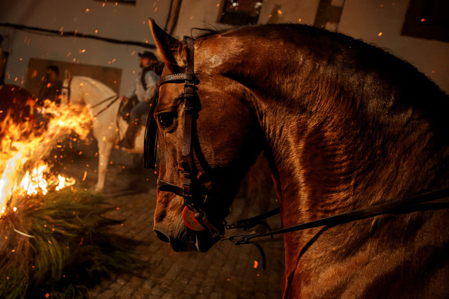 Read moreA horse waits for the start of the "Luminarias" celebration on the eve of Saint Anthony's day, in honor of Spain's patron saint of animals, in the village of San Bartolome de Pinares, northwest of Madrid, Spain, on January 16, 2018. #