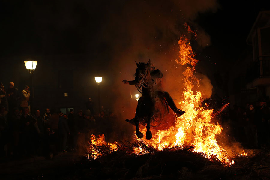 In the past couple of days, festivals were held in two villages separated by language, culture, religion, and great distance, but both centered on the use of fire as a method of purification and blessing—and both were carried out with a liberal partaking in alcohol. In San Bartolome de Pinares, Spain, on the eve of Saint Anthony's Day—to honor Spain's patron saint of animals—people ride horses through bonfires during the “Luminarias,” a centuries-old tradition meant to to purify and protect the animals. In Nozawaonsen, Japan, village men of the unlucky ages of 25 and 42 stage a fiery battle, with one group building and protecting a wooden shrine, and another trying to burn it down with bundles of flaming sticks. The festival is meant to chase out evil spirits, celebrate first births, and pray for happy marriages.