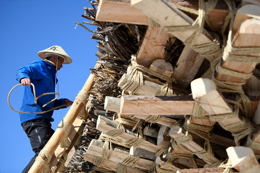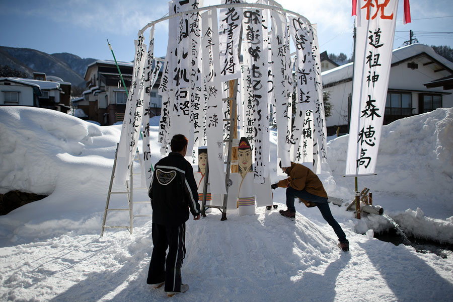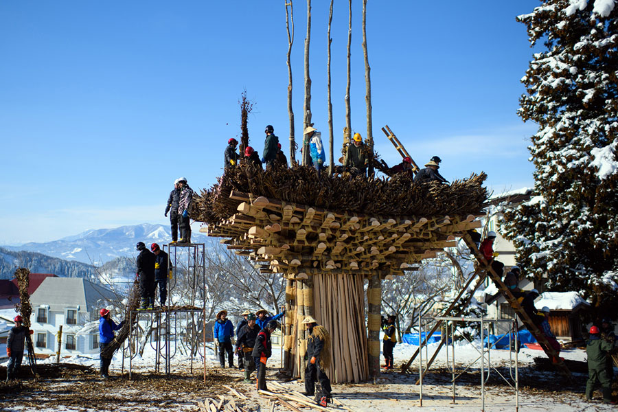 Read moreIn the village of Nozawaonsen, Japan, a man ties a rope during construction of the shrine in preparation for the Nozawaonsen Dosojin Fire Festival on January 15, 2018. The shrine is being built to be burned later that night, during the festival. #