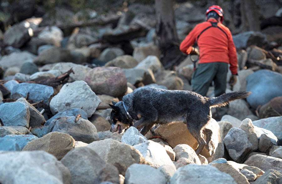 Read moreA cadaver dog searches for bodies with rescue officials in Montecito on January 10, 2018. #