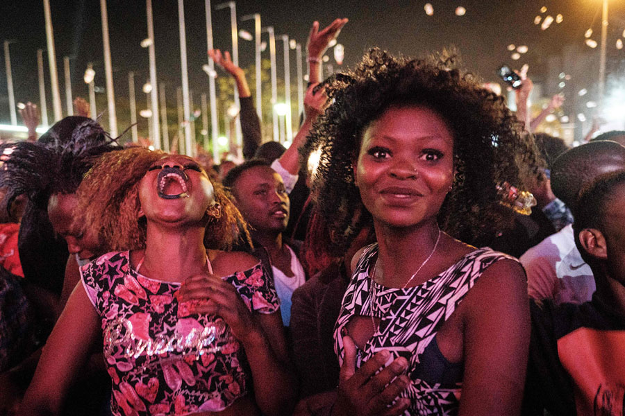 Read morePeople react after counting down to New Year's day on January 1, 2018, during the New Year's music event at Kenyatta International Convention Center in Nairobi, Kenya. #