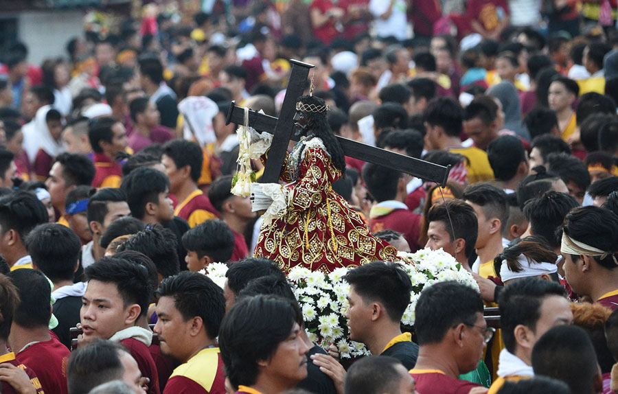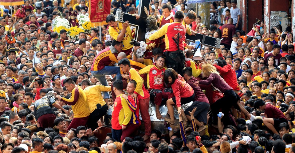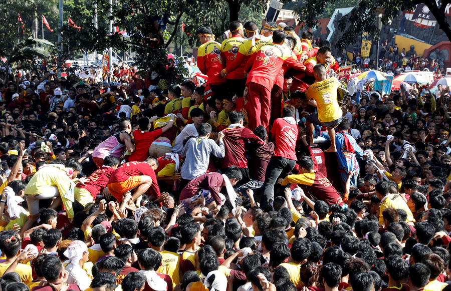 This week, in Manila, Philippines, hundreds of thousands of Catholic devotees took part in an annual procession lasting 22 hours, where they carry a centuries-old icon of Jesus Christ through the streets as barefoot worshipers climb over each other to kiss, touch, or rub bits of cloth on the statue. The Black Nazarene is an ebony statue of Jesus Christ brought to the Philippines in 1606, and is believed to have miraculous powers.
