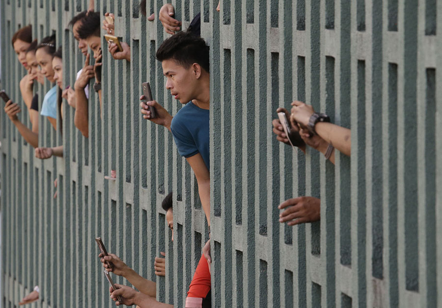 Read moreFilipino Roman Catholic devotees watch from the windows of their homes as a raucous procession to celebrate the feast day of the Black Nazarene passes by on January 9, 2018. #
