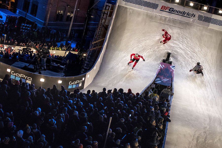 Read moreReed Whiting of the United States, Paavo Klintrup of Finland, Gabriel Andre of Canada, and Eli Krieter of the United States take a corner during the final stage of the ATSX Ice Cross Downhill World Championship in Saint Paul, Minnesota, on February 27, 2016. #