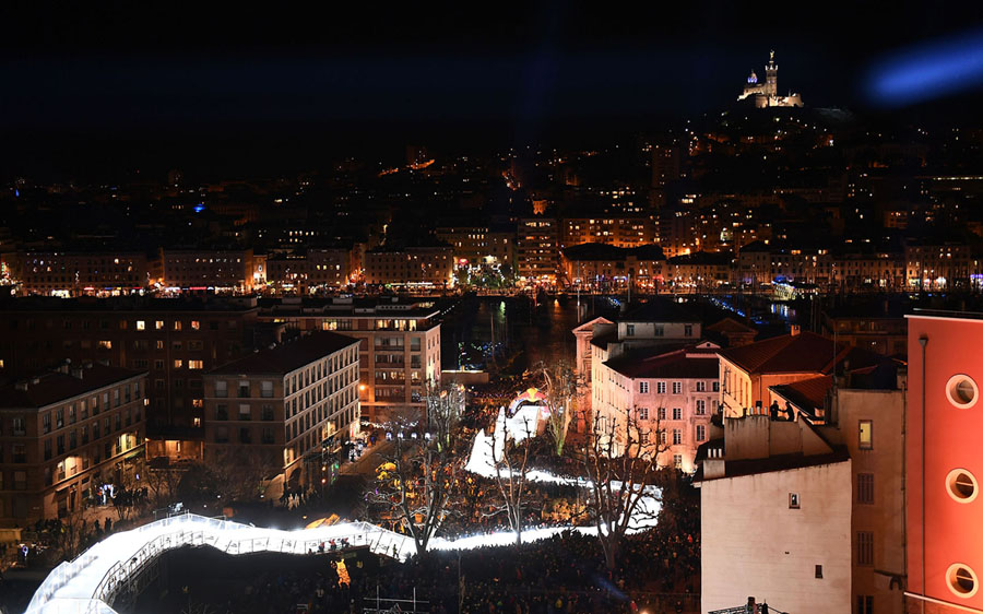 Read moreNotre-Dame de la Garde and Marseille's Old Port can be seen in the background as skaters compete on a track during the "Red Bull Crashed Ice" Ice Cross Downhill World Championship in Marseille on January 14, 2017. #