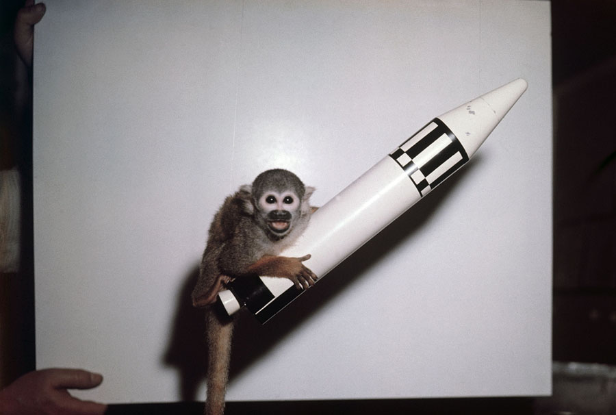 Read moreOriginal caption: May 27, 1959—Pensacola, Florida: Monkey Baker, an American-born squirrel monkey, was one of the two monkeys which traveled in the nose cone of the Jupiter Intermediate Range Ballistic Missile launched by the U.S. Army at the Atlantic Missile Range. The monkeys participated in a series of biomedical experiments, which also included tests on certain animal and vegetable matter in support of the National Aeronautic & Space Administration space programs. #