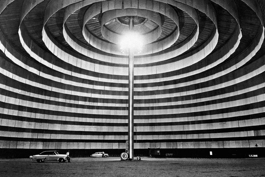 Read moreOriginal caption: Approximately 12 large cargo planes or 40 to 50 smaller aircraft could be hangared in this huge dome-shaped building designed and constructed by Le Tourneau at Longview, Texas, on request from evangelist Billy Graham. It seems that when Graham travels, local facilities have proved inadequate to handle his huge following, hence the portable aluminum "big top" or "semisphere." The building is constructed by first placing the 95-foot center pole with a sliding steel collar at the top, then adding each of the 15 successive rings of aluminum sheets, which are bolted together. This photo shows the interior with parked cars for contrast and the concentric rings showing plainly. #