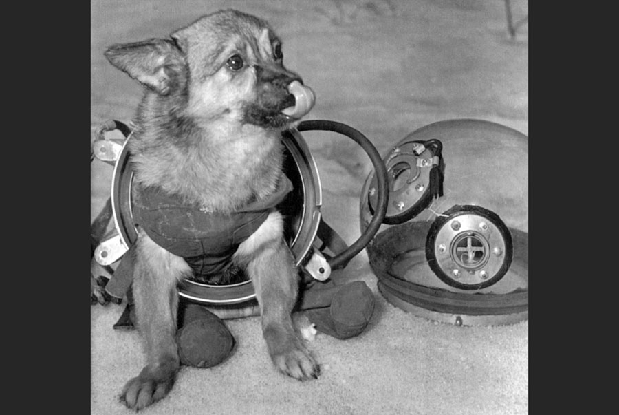 Read moreOriginal caption: November 3, 1957, Moscow, Russia—Called an experienced astronaut, Malyshka, a Russian space dog, poses here in its snug-fitting space suit with a transparent space helmet beside it. Meanwhile, the newly launched Soviet satellite, Sputnik II, circles the earth, carrying what is reported to be a female husky dog, the first living being to roam space. #