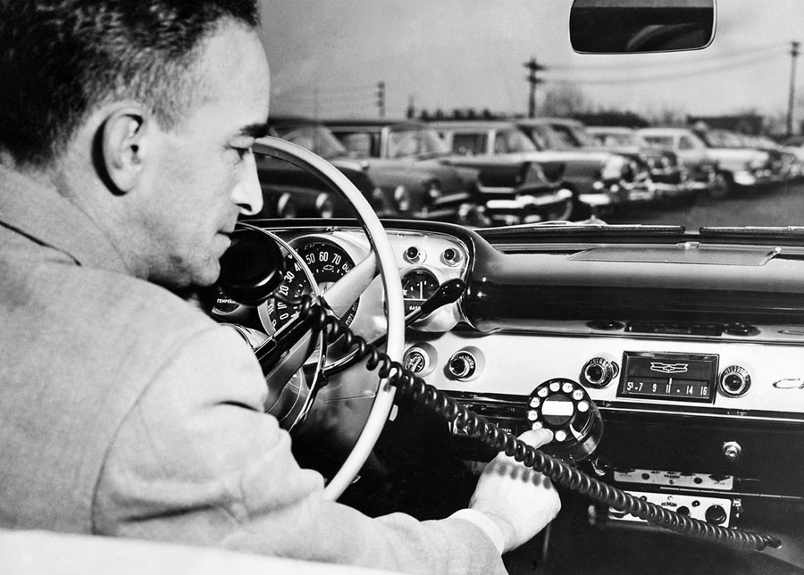 Read moreOriginal caption: Du Mont engineer James A. Craig demonstrates a simple dialing procedure on a completely automatic "dial-direct" mobile two-way radiotelephone system in Clifton, New Jersey, on March 28, 1957. The system, presently used by the Richmond Radiotelephone Service, Inc., is manufactured by Allen B. Du Mont Laboratories, Inc., and is the first radiotelephone equipment to allow phone calls to and from vehicles to be relayed completely unattended through local telephone companies. #