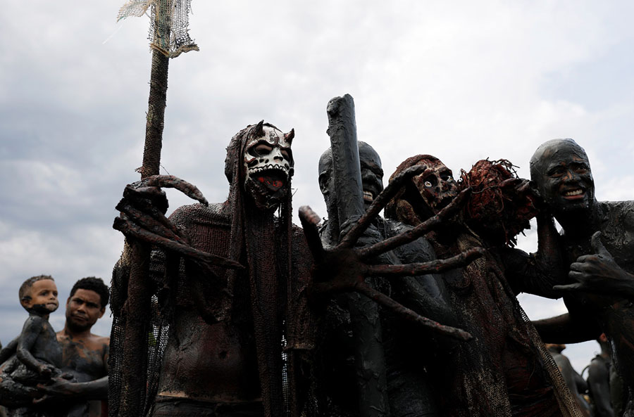 Read moreA mud-covered reveler poses during the traditional "Bloco da Lama" or "Mud Block" carnival party in Paraty, Brazil, on February 10, 2018. Hundreds of revelers wrestled, tackled each other, and threw chunks of gunk Saturday while shaking it to samba and reggaeton at a Carnival beach party where clothes were optional but the mud was not. #