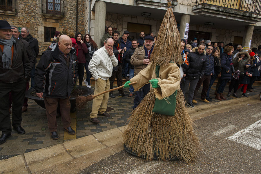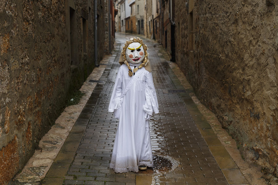 Read moreA reveler dressed as an infant with a white dress stands in a street during "El Gallo de Carnaval" (The Carnival Rooster) of Mecerreyes on February 11, 2018, in Mecerreyes, Burgos province, Spain. The Gallo de Carnaval of Mecerreyes is an ancient pagan festival. During the "Carnavaladas y Zarramacadas," characters take the streets with dressed with ropes, bones, skins, scraps of cloth, oak leaves, and other rural items. At the end of the festival the Zarramacos chase young revelers who try to steal a rag rooster from "El Rey" (The King). #
