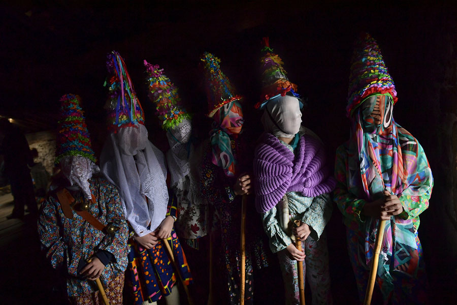 Read moreA group of participants called ''Txatxus'' take part in an ancient rural Carnival in the small Pyrenees village of Lantz, northern Spain, on February 11, 2018. The Carnival is a long-standing rural tradition in which the forces of good and evil confront each other in a symbolic battle. From Sunday to Tuesday, during Carnival week, in the little village of Lantz the legendarily evil bandit Miel Otxin, represented by a doll filled with straw, is imprisoned and sentenced to death by fire. #