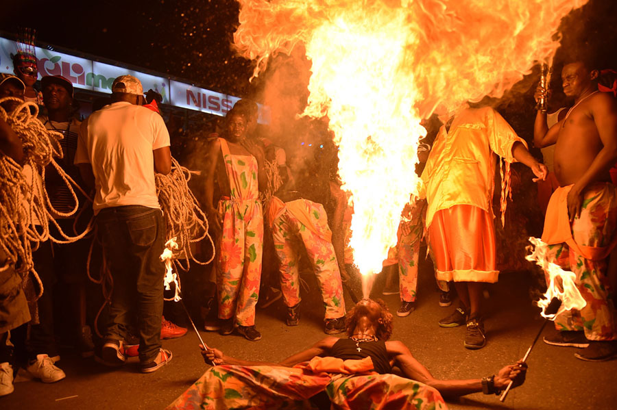 Read moreA reveler performs on the first day of the 2018 National Carnival Parade on February 11, 2018, in Port-au-Prince, Haiti. The name of the Carnival for this year in Haitian creole is "Ayiti sou wout chanjman" (Haiti on the road to change). #