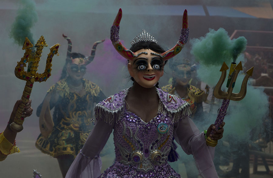 Read moreDancers perform the traditional Diablada in Oruro, Bolivia, on February 10, 2018. Thousands of colorfully dressed dancers and musicians kick off Carnival celebrations in the Bolivian city of Oruro. #