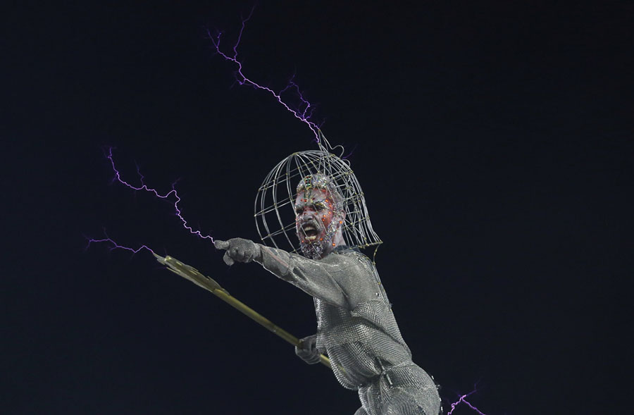 Read moreA dancer from Mocidade Samba School performs with electricity during the first night of the Carnival parade at the Sambadrome in Rio de Janeiro on February 12, 2018. #