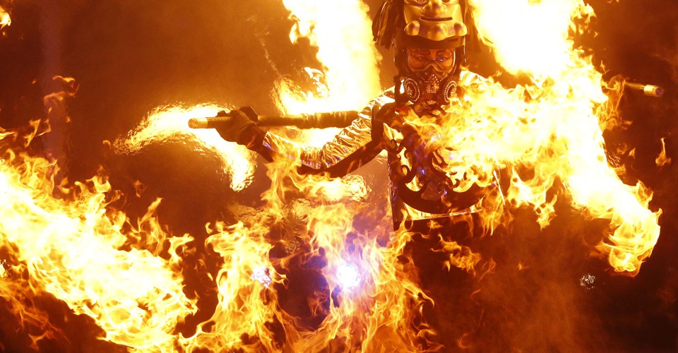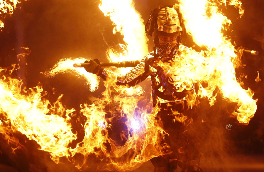 Read moreA dancer performs with fire during the Winter Olympics opening ceremony on February 9, 2018. #