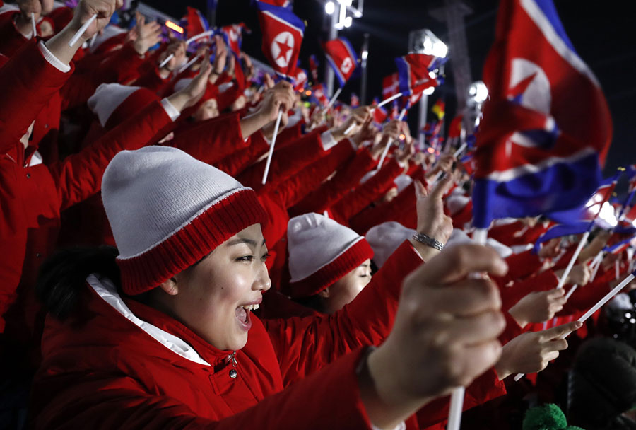 Read moreCheerleaders of North Korea cheer in the stands of Pyeongchang Olympic Stadium on February 9, 2018. #