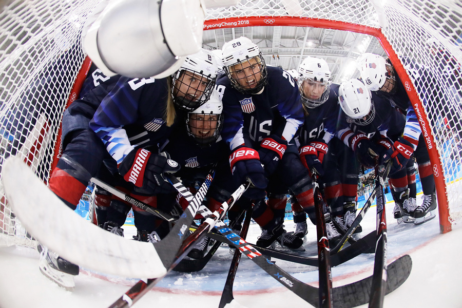 Read moreTeam United States huddles in the goal prior to the start of their game against Finland in the ice hockey women's playoff semifinals at Gangneung Hockey Center on February 19, 2018. #