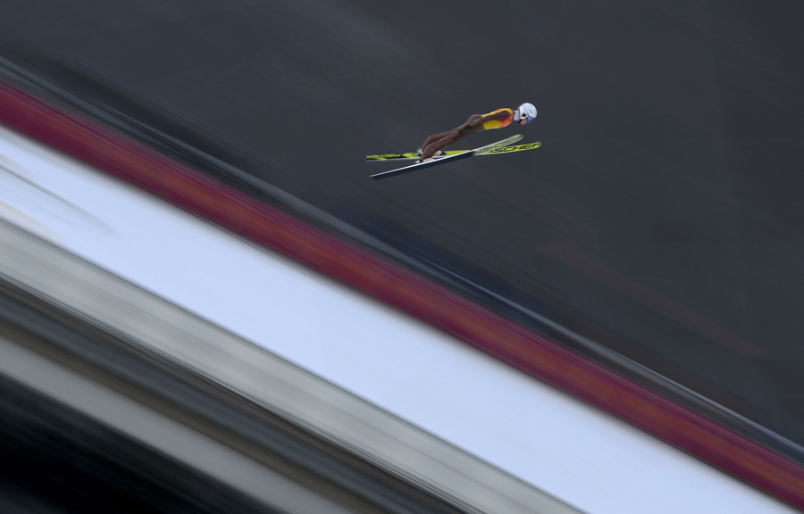 Read moreAn in-camera multiple-exposure image of Paul Eckert of Germany training ahead of the freestyle skiing men's ski-cross seeding at Phoenix Snow Park on February 21, 2018. #