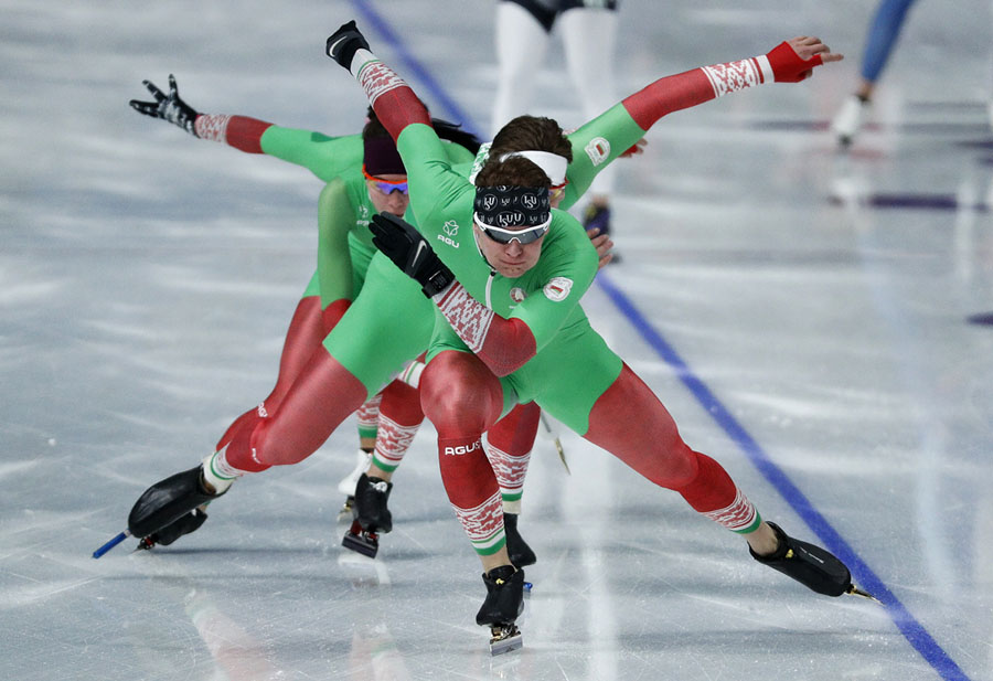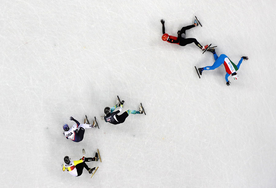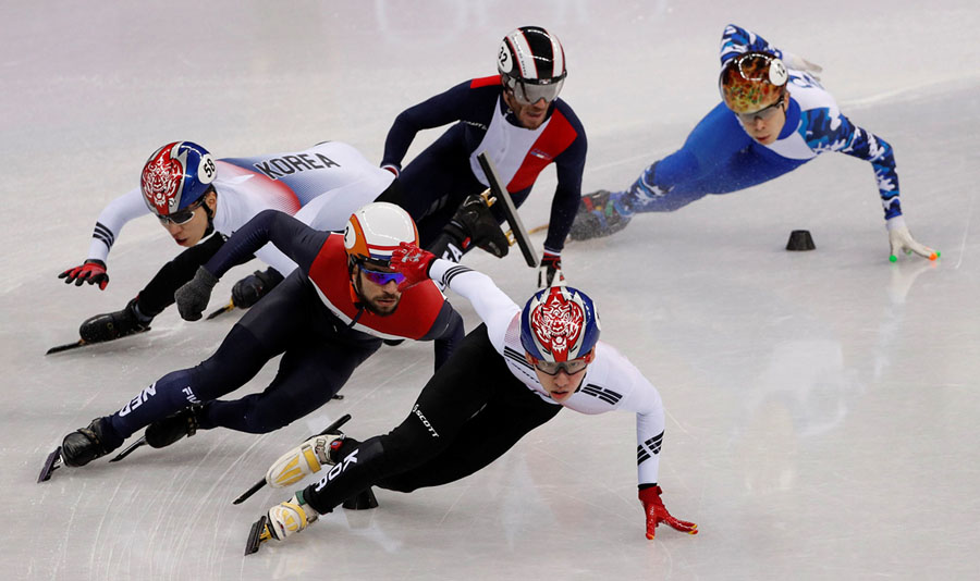 Read moreLim Hyo-jun of South Korea leads ahead of Sjinkie Knegt of the Netherlands as Hwang Dae-heon of South Korea falls in the men’s 1500-meter short track speed-skating final on February 10, 2018. #