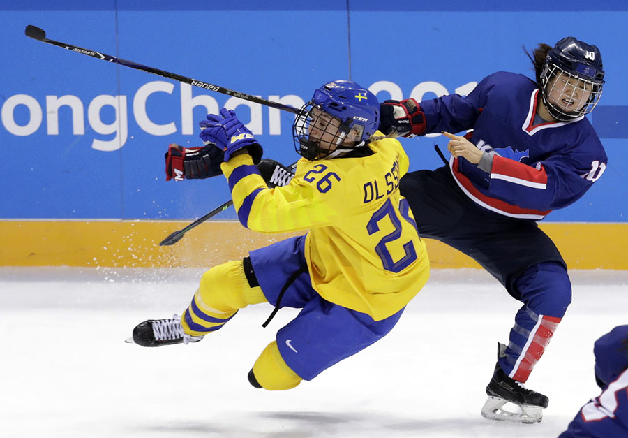 Read moreHanna Olsson (26) of Sweden collides with South Korea's Choi Jiyeon (10) of the combined Koreas team during the third period of a preliminary round of women's hockey on February 12, 2018. #
