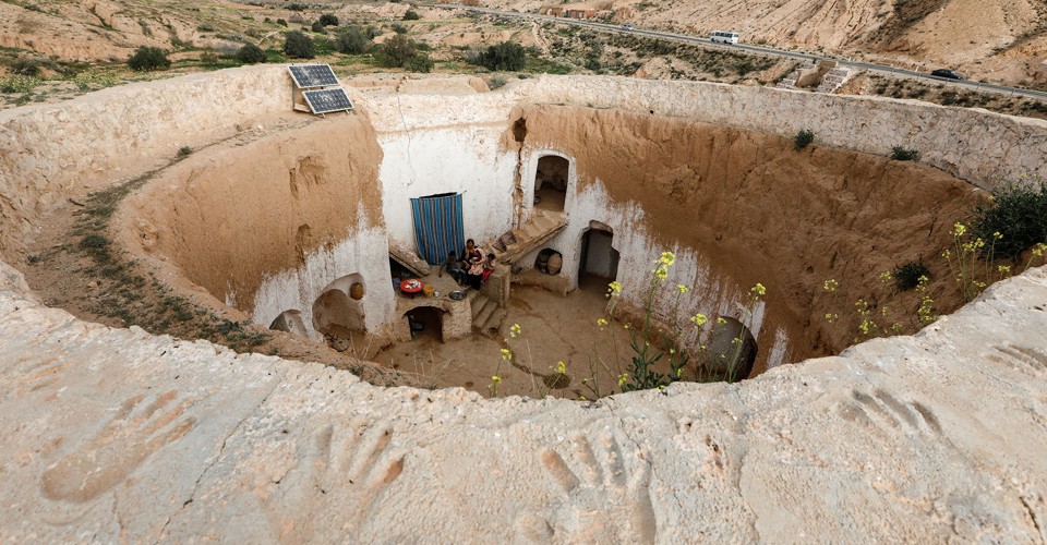Reuters photographer Zohra Bensemra recently spent time in southern Tunisia's Djebel Dahar region, where locals have lived in underground homes for centuries. The cave houses, also known as troglodyte houses, offer protection against the extremes of summer and winter in the arid desert. A cluster of these crater-like homes can be seen in the village of Haddej on Google Maps. Most of theses cave homes can be found around Matmata, which gained fame as a filming location for Luke Skywalker’s home in the 1977 movie Star Wars. Reuters reports that fewer of these underground homes are now used, with some falling into disrepair: “In recent decades, rural depopulation has meant fewer people live in the homes, which are composed of rooms hewn into the walls of an excavated circular courtyard. The few remaining families say they are attached to the homes and the land or see no way of moving.”