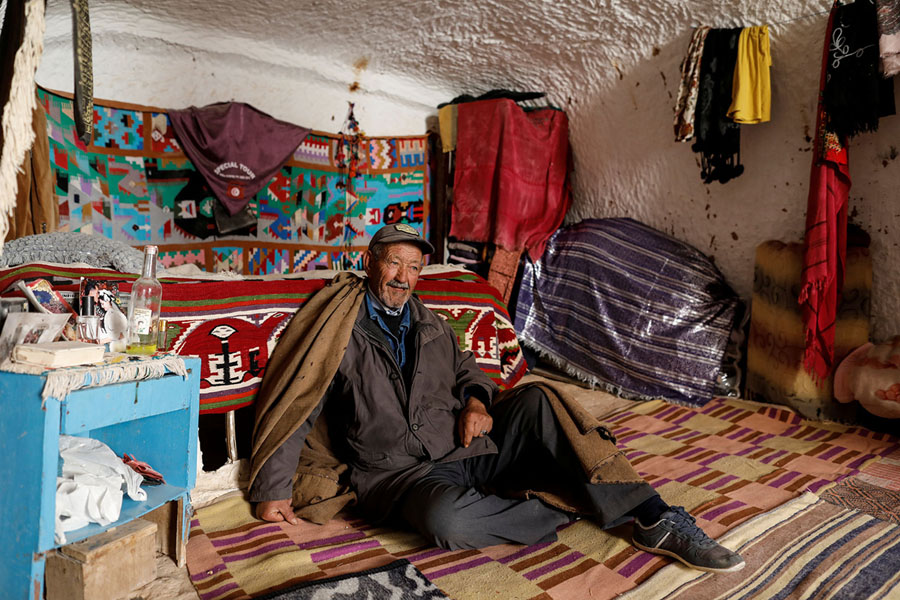 Read moreTayeb, 76, sits inside his home on February 5, 2018. "Our home was open for tourists to visit, but now with the lack of tourists we don't earn anything. I don't want to leave my house; it's where I grew up," Tayeb said. #