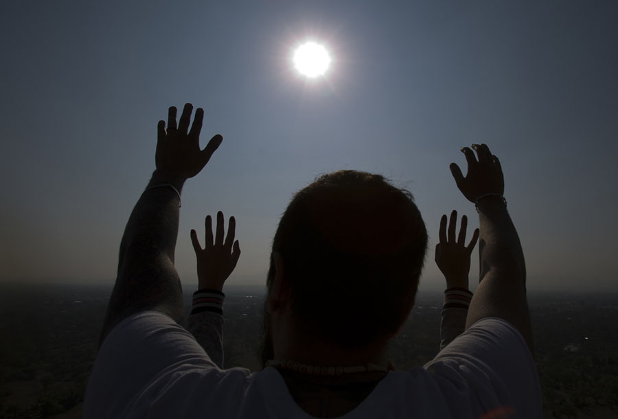 Read moreA couple holds their hands out to receive the sun's energy as they celebrate the spring equinox atop the Pyramid of the Sun in Teotihuacan, Mexico, on March 21, 2018. Although the official vernal equinox occurred on Tuesday, thousands of visitors were expected to climb the ancient pyramid Wednesday to greet the sun and celebrate the beginning of spring. #