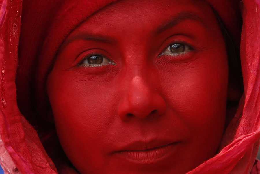 Read moreA Tecal theater-group performer eyes the camera during the inaugural parade kicking off the 16th Ibero-American Theatre Festival, in Bogota, Colombia, on March 17, 2018. #
