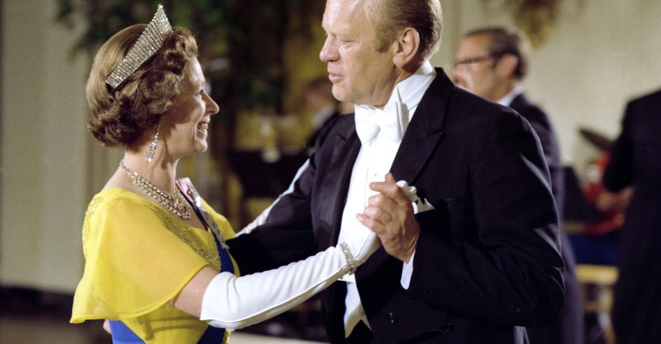 Read moreFirst Lady Betty Ford and comedian Marty Allen dance in the Entrance Hall of the White House on September 21, 1976, during the state dinner for the President and First Lady of the Republic of Liberia. #