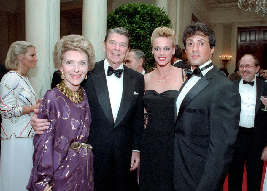 Read morePresident Reagan and Nancy Reagan pose with Sylvester Stallone and Brigitte Nielsen during a state dinner for Prime Minister Lee Kuan Yew of Singapore on October 8, 1985. #