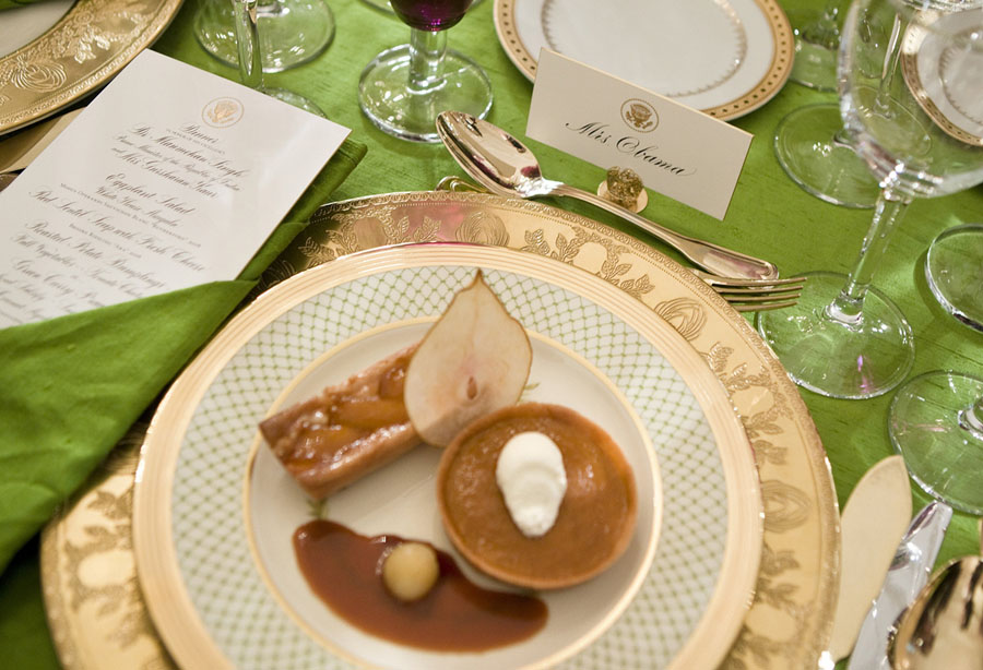 Read moreAn example of First Lady Michelle Obama's place setting for the state dinner for Prime Minister Singh of India is seen in the State Dining Room of the White House November 24, 2009. #