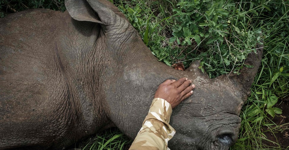 Read moreA Kenya Wildlife Services ranger covers an eye of Abby, a four-year-old female Southern white rhino, to dim the light. Abby was tranquilized during a rhino ear-notching exercise for identification at Meru National Park, 350 kilometers from Nairobi, Kenya, on April 5, 2018. #