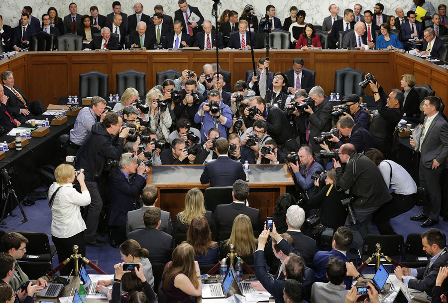 Read moreFacebook co-founder, chairman and CEO Mark Zuckerberg arrives to testify before a combined Senate Judiciary and Commerce Committee hearing in the Hart Senate Office Building on Capitol Hill on April 10, 2018. Zuckerberg was called to testify after it was reported that 87 million Facebook users had their personal information harvested by Cambridge Analytica, a British political consulting firm linked to the Trump campaign. #