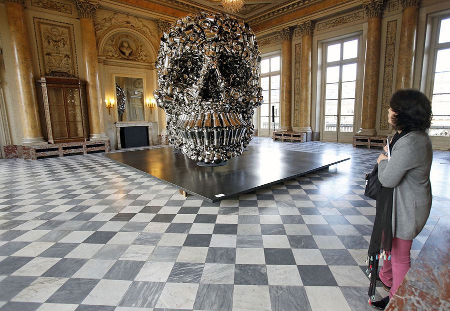 Read moreA visitor looks at a piece of artwork entitled 'Very Hungry God' by Indian artist Subodh Gupta prior to the opening of his retrospective exhibition Adda/Rendez-vous at the Monnaie de Paris on April 10, 2018, in Paris, France. #