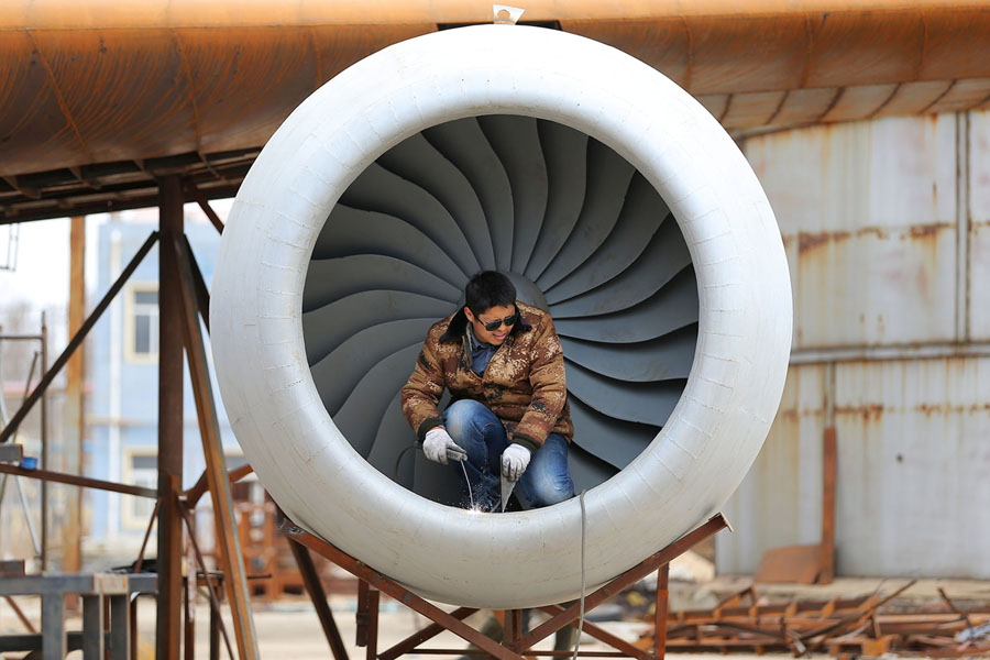 Read moreZhu Yue works on a model turbine for a full-scale replica of an Airbus A320 plane that he and his friends are building, in Kaiyuan, Liaoning province, China, on April 3, 2018. Zhu, a mechanic and aviation fan, says that the plan is to eventually convert the replica into an aviation-themed restaurant. #