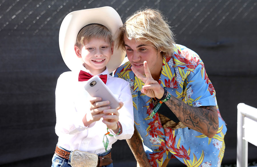 Read moreViral internet sensation Mason Ramsey (also known as "The Walmart Yodeling Boy"), and recording artist Justin Bieber pose for a selfie backstage during Coachella 2018 on April 13. #