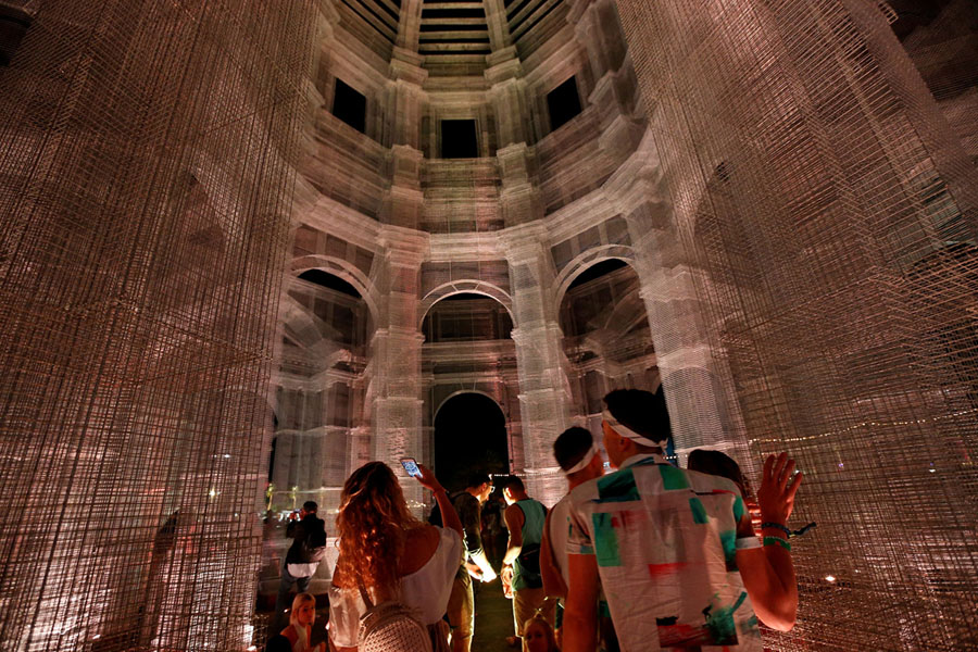 Read morePeople walk inside an installation by Edoardo Tresoldi called "Etherea" at Coachella 2018 on April 13. #
