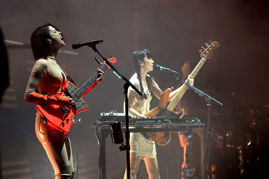 Read moreYoshiki of X Japan performs right against the audience on April 14, 2018, in Indio, California. #
